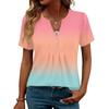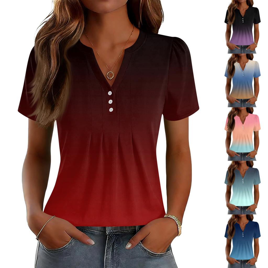 Damskie Góry Eleganckie Codzienne Koszule z Dekoltem V Krótkim Rękawem Plisowane Bluzki Tuniki zapinane na guziki