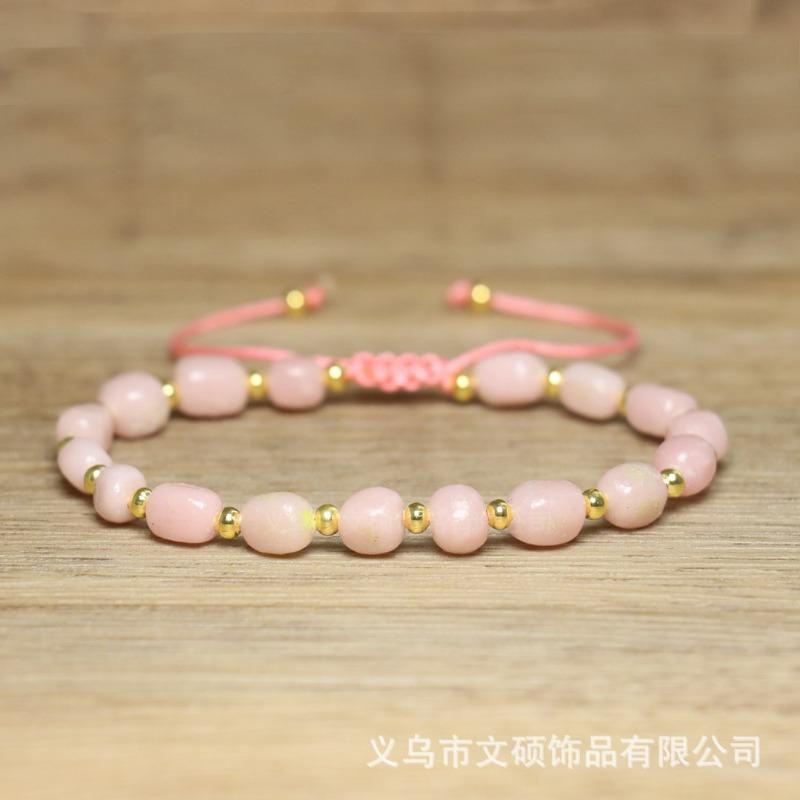 Bransoletka z owalnych koralików Różowy Opal – Złoty Akcent Regulowana Biżuteria Boho, Prezent Miłość Spokój dla Kobiet