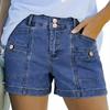 Damskie Kolorowe Jeansowe Szorty Stretch Slim Fit z Przetarciami