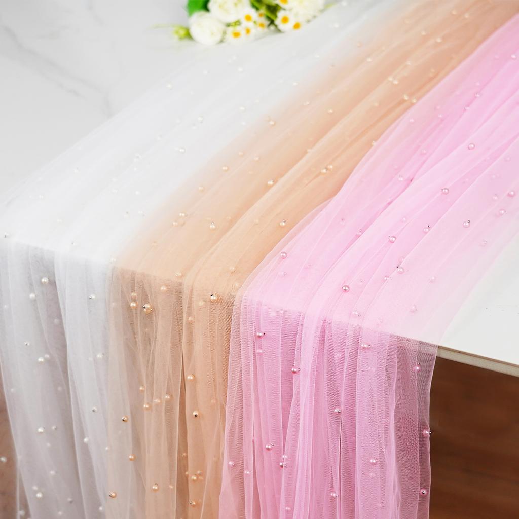 Pearl Gauze Table Runner 120 Inch 10 FT Tulle Wedding Centerpiece Runner Shabby Chic for Wedding Party Baby Shower Birthday