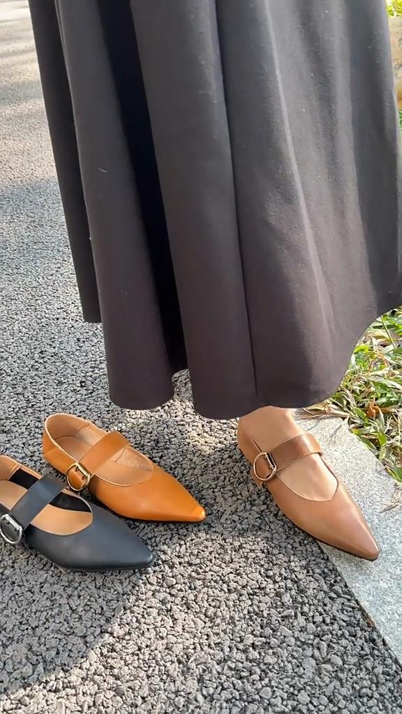 Johnature Retro Mary Jane Pointed Toe Women's Shoes Versatile Genuine Leather Soft Soled Flat Shoes