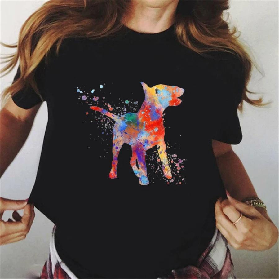 Nowatorski design Bull Terrier nadruk akwarelowy koszulka damska letnie topy t-shirt femme zabawny miłośnik psów koszulka damska streetwear