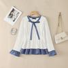ZANZEA Womens Round Neck Casual Plaid Patchwork Long Sleeve Blouse