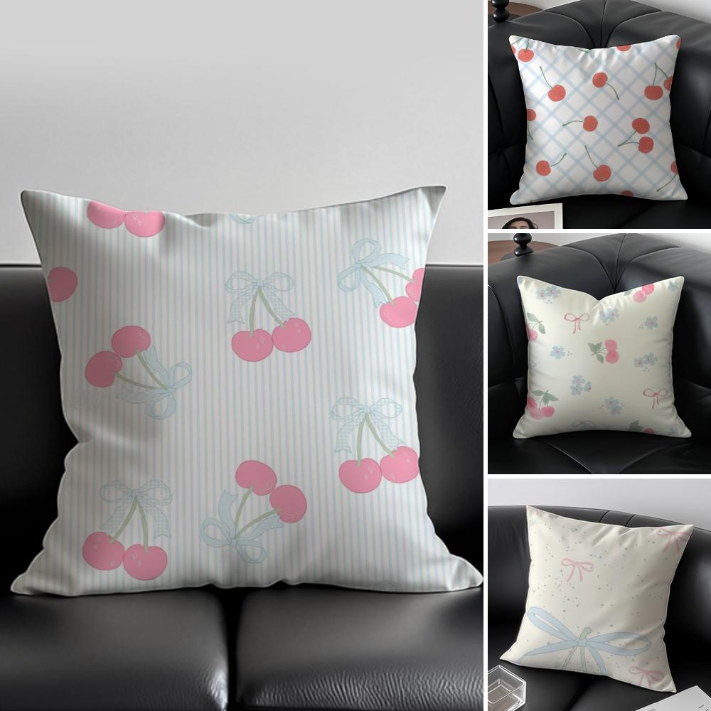 Cherrypatterned floral print Cushion Cover Pillow Case Antidustmite Invisible zipper silky plush cushion