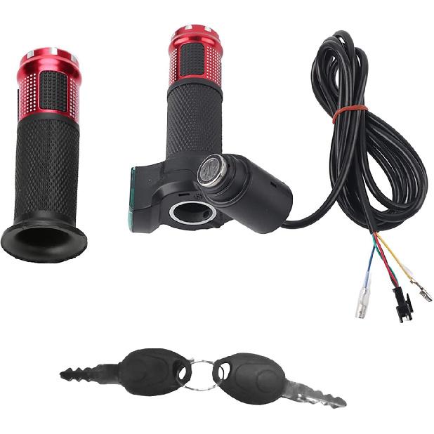 1 Pair Twist Throttle Grips, Twist Throttle Grips with LED Display Screen Handle with Key Knock for 12-84V Electric Bike or Scooters