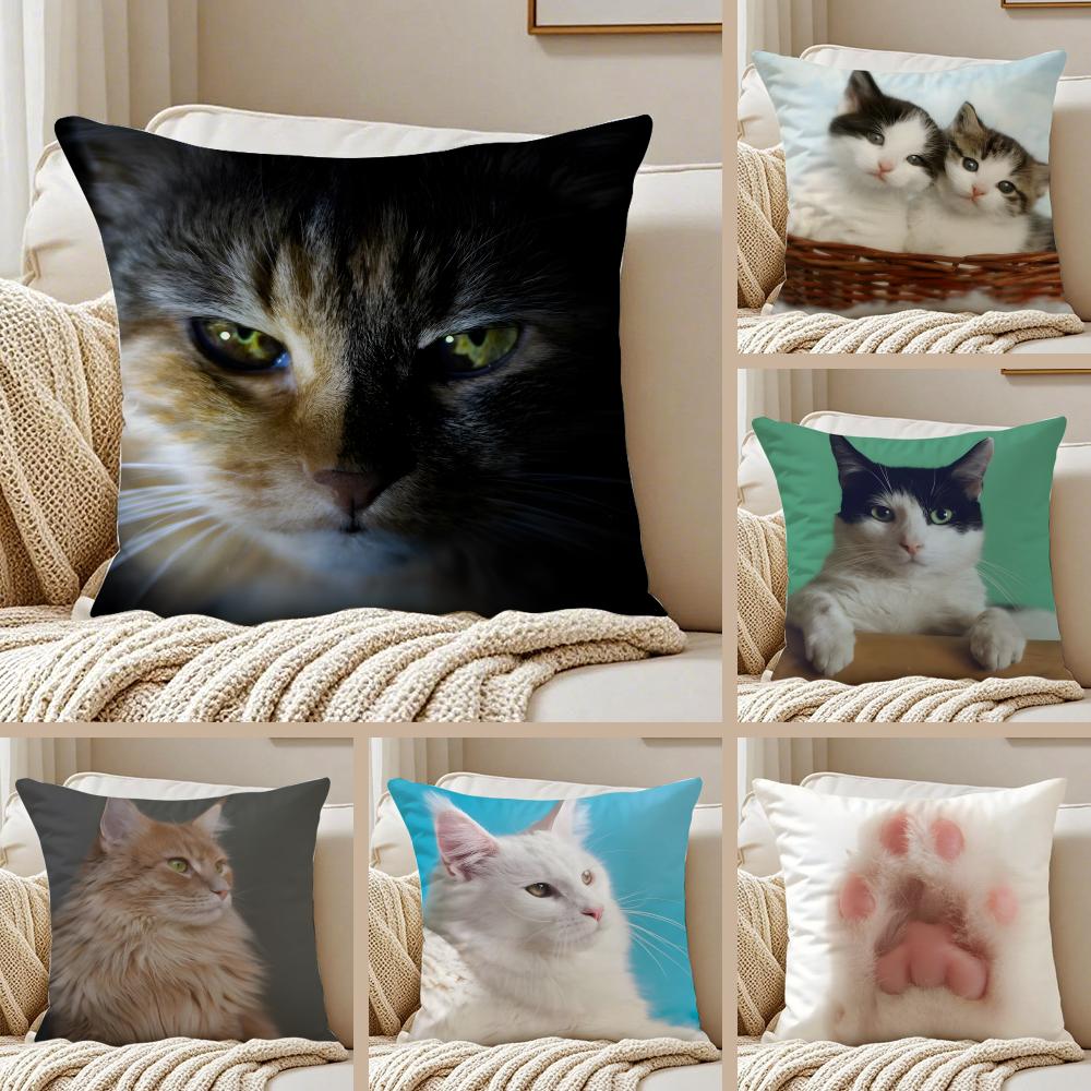 Cute Cats photograph Cushion Cover Pillowcase Antidustmite Invisible Zipper Short Plush Sofa Cushion