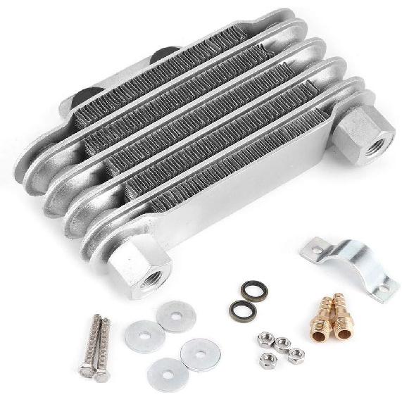 Zestaw Chłodnicy Oleju, Stop Aluminium 5-rzędowy Uniwersalny Chłodnica Oleju Silnika Radiator Chłodzący Zamiennik do Motocykla Dirt Bike ATV Pit Bike, Srebrny