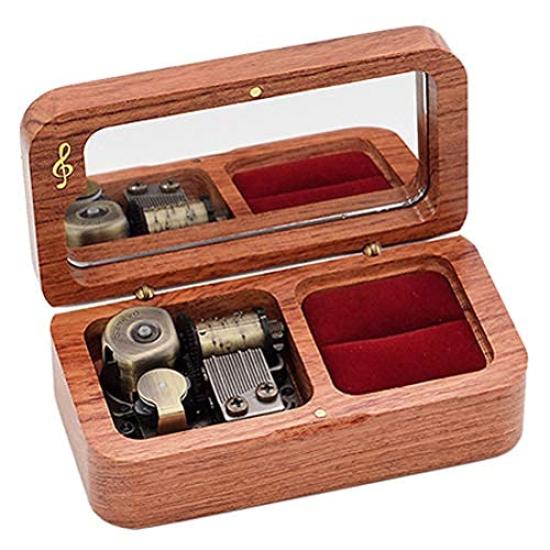 Sinzyo Cylinder Music Box, Wooden, with Ring Holder (Rosewood, Song Canon)