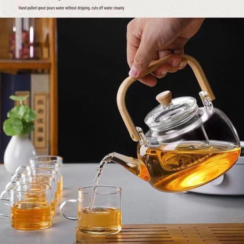 High Temp Resistant Glass Teapot with Bamboo Handle for Boiling Water & Brewing Tea - Complete Tea Set