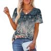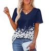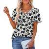Damska Modna Codzienna Bluzka Pulower z Krótkim Rękawem z Nadrukiem i Dekoltem w Serek