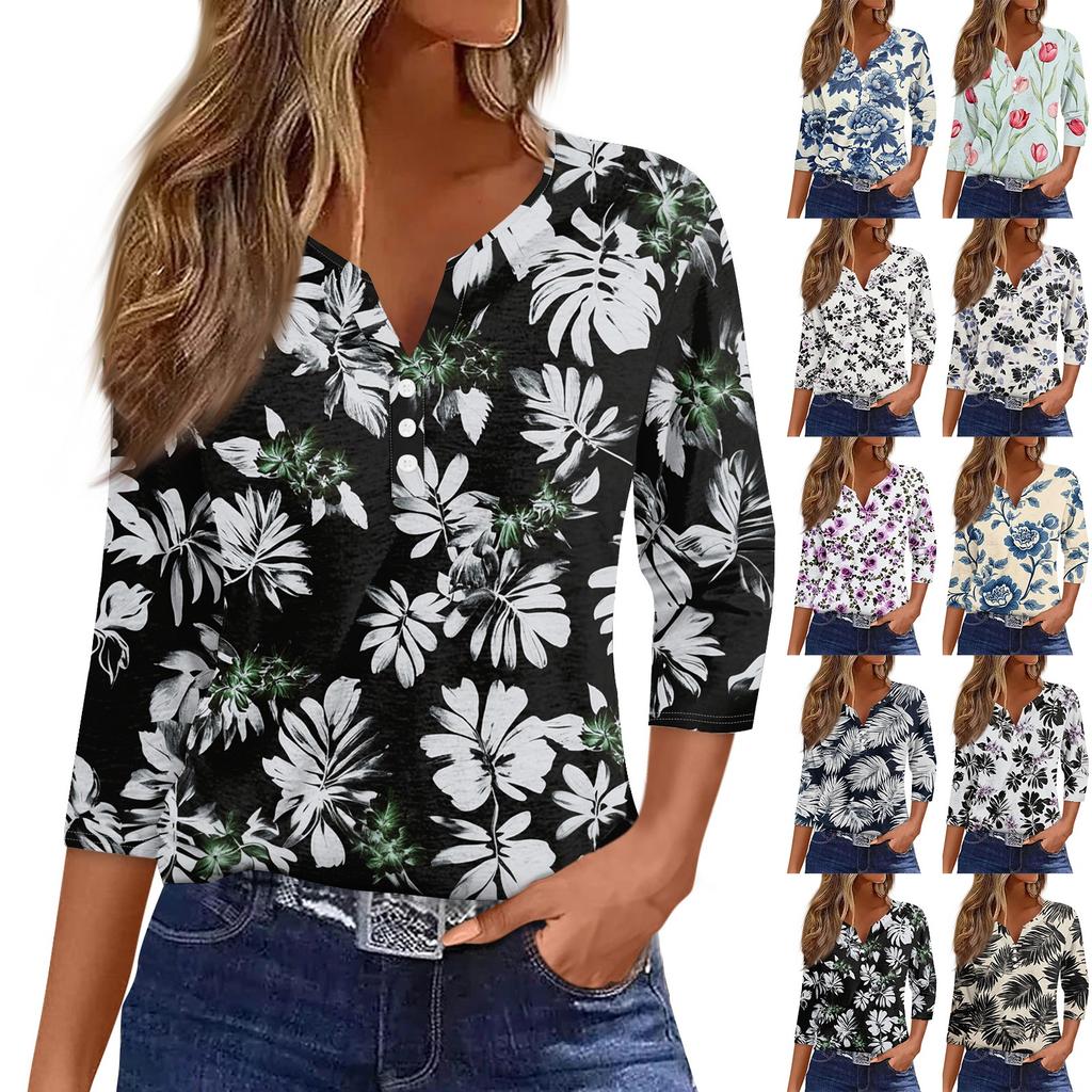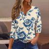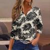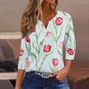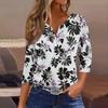 Damska koszulka z nadrukiem na guziki, rękaw 3/4, codzienna, weekendowa, modna, podstawowa, dekolt w serek, regularny top