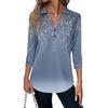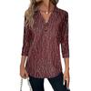 Women's Fashion Casual Lapel Short 3/4 Sleeve Print Shirt Women's V-Neck Button Tops