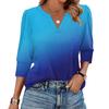 Damska Moda Casual Koszula z Nadrukiem z Rękawem 3/4 Damskie Bluzki z Dekoltem w Serek