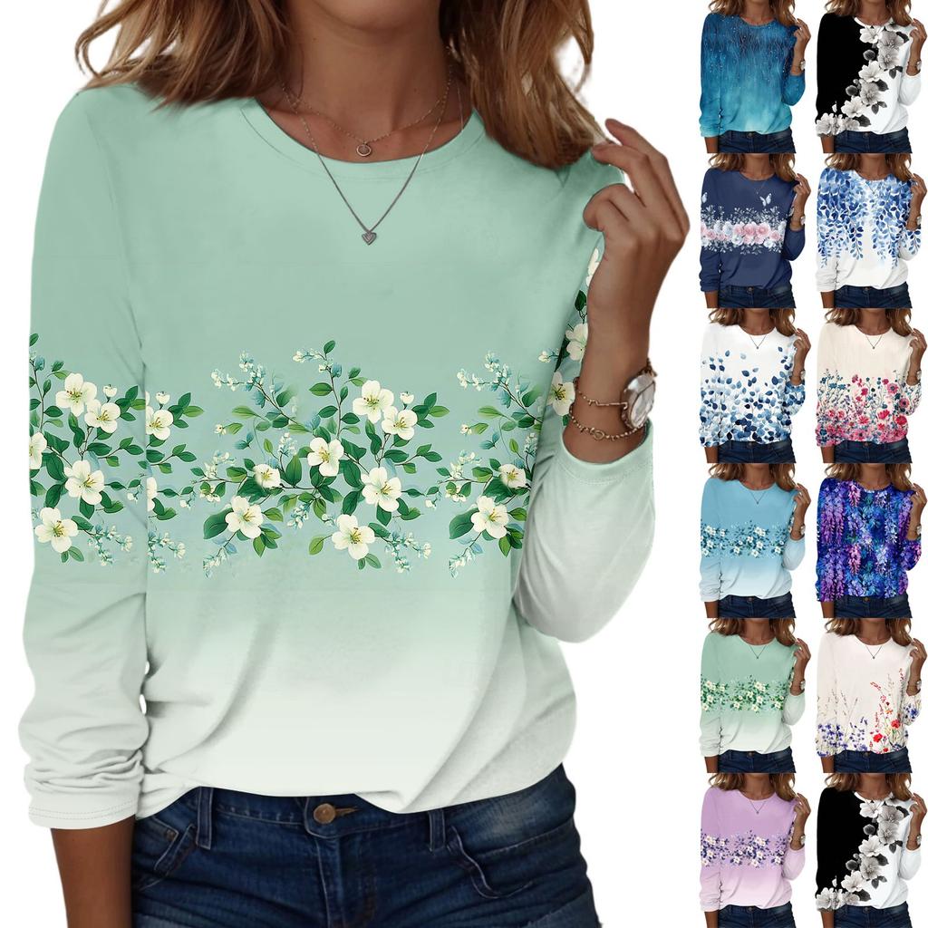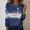 Koszule damskie z długim rękawem Śliczne nadruki Koszulki z nadrukami Bluzki Casual Plus Size Podstawowe topy Pulowery