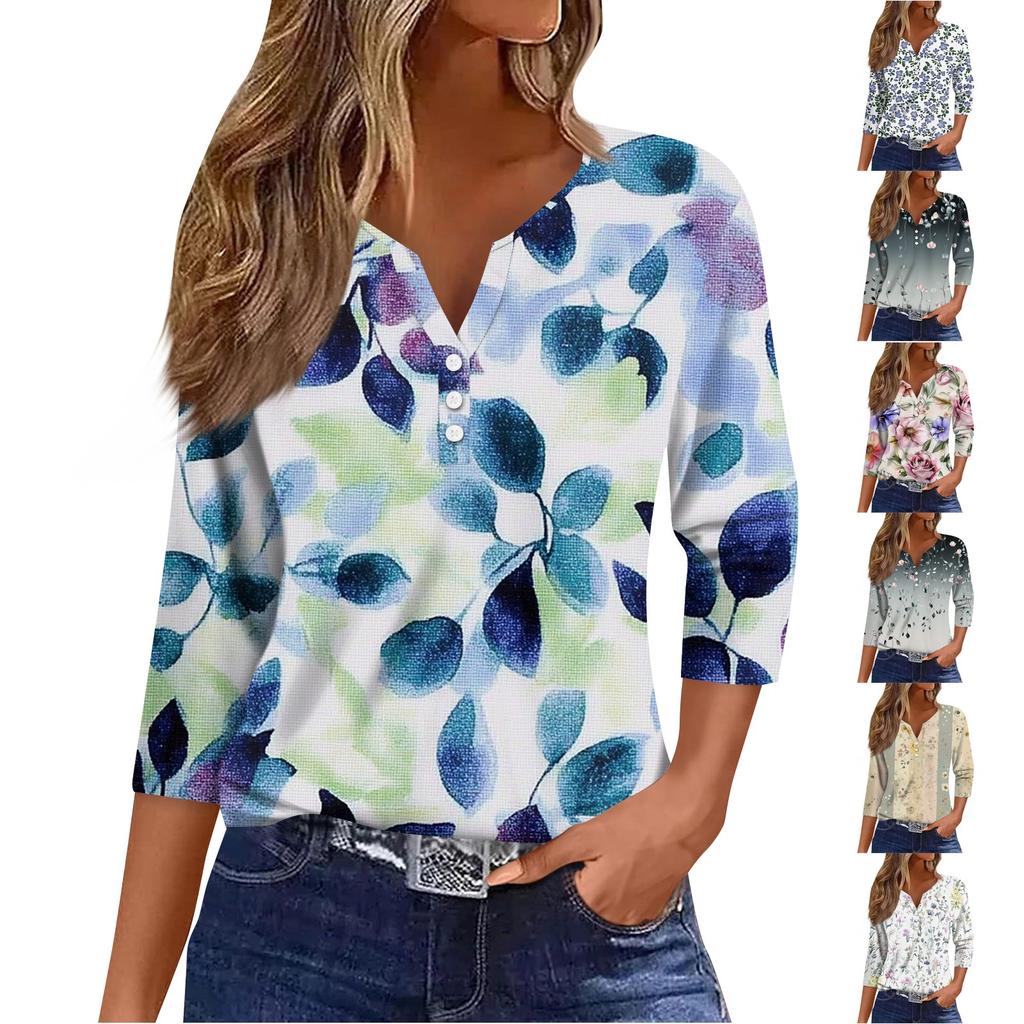 Damska koszulka T-shirt z nadrukiem Rękaw 3/4 Codzienny weekend Moda Podstawowy Dekolt w kształcie litery V Regularny top