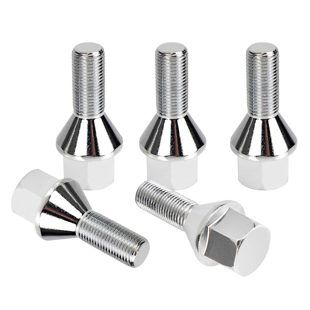 12x1.25 Wheel Lug Bolts 5 Pcs Silver Lug Shank 28mm Compatible with Jeep Compass Renegade Fiat Cherokee Acorn, 28mm Shank 19mm Hex 2.45 inch Length