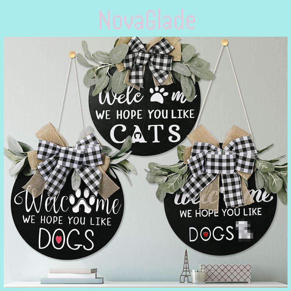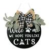 Drewniana tabliczka w rustykalnym stylu amerykańskim z kratkowaną kokardą do wystroju domu Psy i Koty