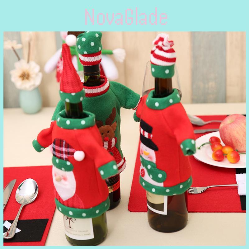 Festive Christmas Wine Bottle Cover Embroidered Cartoon Designs For Holiday Cheer