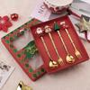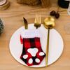 Adorable Christmas Plush Border Plaid Cat Paw Print Fork And Knife Set Table Decor