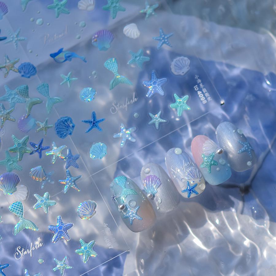 Gradient Blue Iridescent Seashell & Starfish Nail Art Stickers