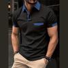 Summer Men's Lapel Button Polo Shirt Loose Casual Trend Pocket Color Block Men's Sports Fitness Polo Shirt
