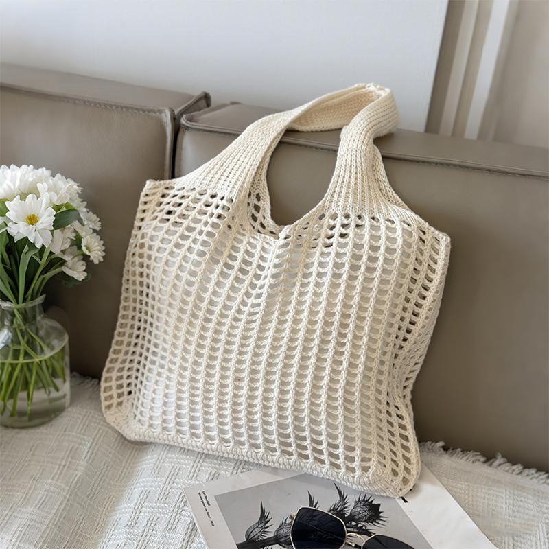 Hollow Out Solid Color Shoulder Bag Fabric Shopper Tote Bags High Quality Versatile New Soft Women's Handbags