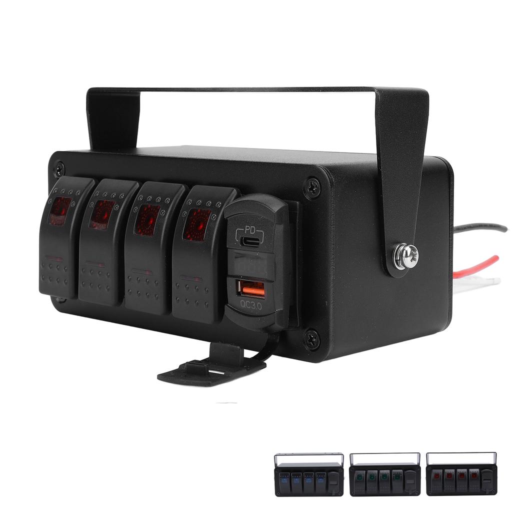 DC 12-24V 4 Gang Rocker Switch Panel with PD Type C QC3.0 USB Charger Waterproof Universal Fit for Car Truck Boat RV UTV ATV