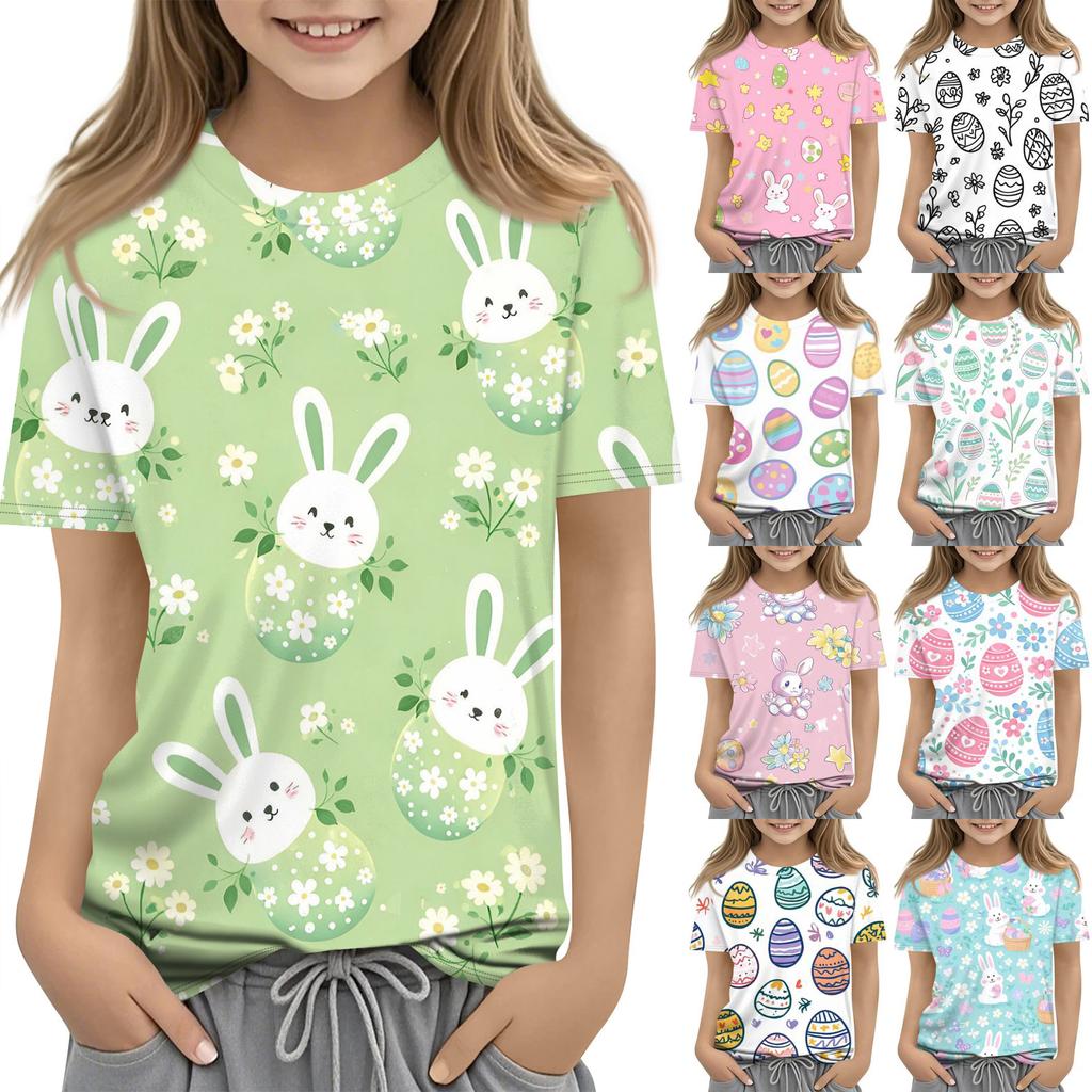 Children's Easter Printed Round Neck Short Sleeved Casual T-shirt
