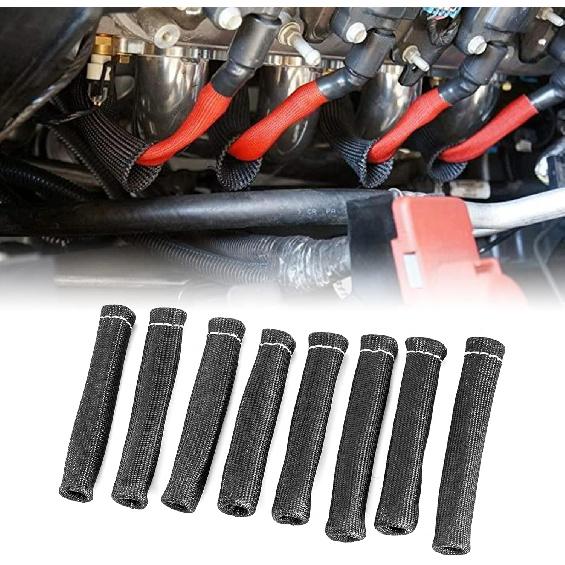 Wsays 8PCS 2000° Spark Plug Wire Boots Protector Sleeve Heat Shield Cover Compatible with All Angled & Straight Boots