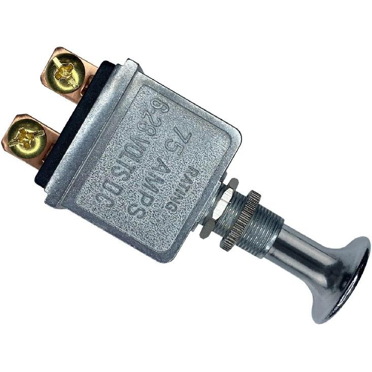 Heavy Duty Push Pull Switch, 75A On-Off 2 Position SPST Toggle Switch 6–28V DC 12V Chrome Knob, Screw Blade Terminal Cut Off Switch for Car, Truck,