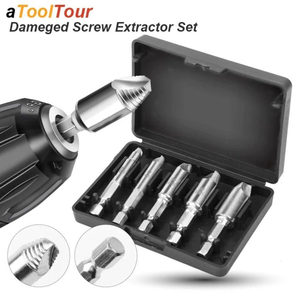 Hex Shank Screw Extractor Set Hardened Steel Easy Out Drill Tool Rusted Screws