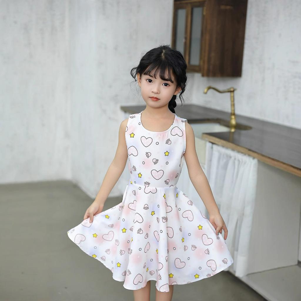 Girls Sleeveless Dress Baby Summer Cool Breathable Vest Children's Princess Dress Solid Color Elastic Skirt