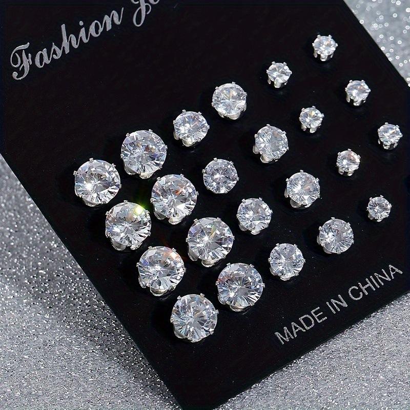 12 Pair/Lot White Shiny Wedding Stud Earrings Set for Women Men Cubic zircon Jewelry Accessories Minimalist Earring Jewelry Gift