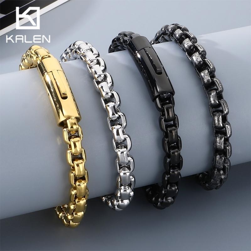 KALEN Gold Plated Stainless Steel Box Chain Bracelet for Men Hip Hop Square Clasp Accessory Waterproof Trendy Jewelry Gift