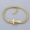 Stainless Steel Cross Bracelet for Men Women Polished Symbol Curb Chain Wristband Gold Color Adjustable Jewelry for Daily Wear