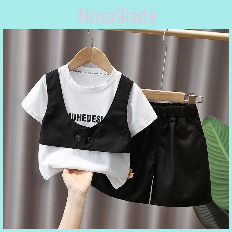 Available in various sizes, from 80cm to 140cm in height, this outfit accommodates growing kids perfectly. The tailored shorts provide a relaxed fit, allowing your little one to run, jump, and play without any hindrance. Ideal for any summer outing, this Adorable Boys Summer Clothing Set will quickly become a favorite in your child's wardrobe. Dress them up in this fashionable and functional ensemble and watch as they shine with confidence all season long!