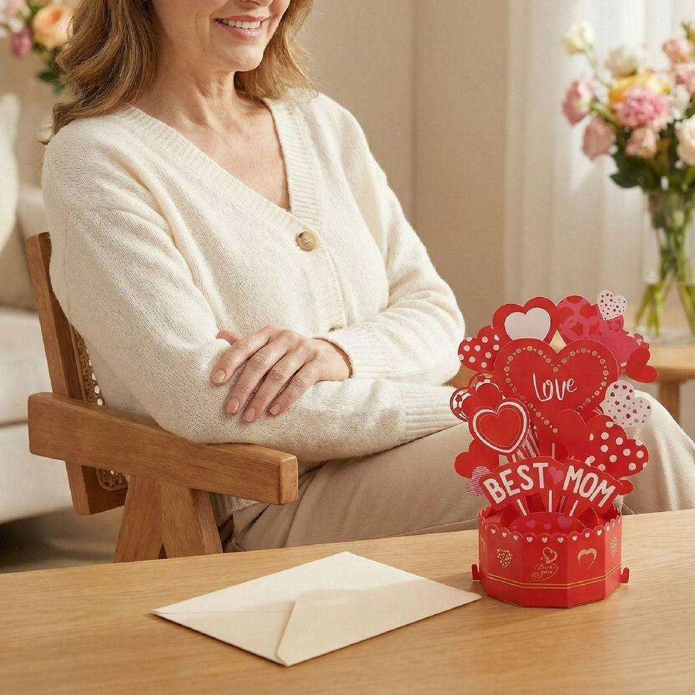 Romantic Mother's Day Greeting Card Blessing Creative 3D Award Cup Greeting Cards with Envelope Paper Sculpture Thank You Card