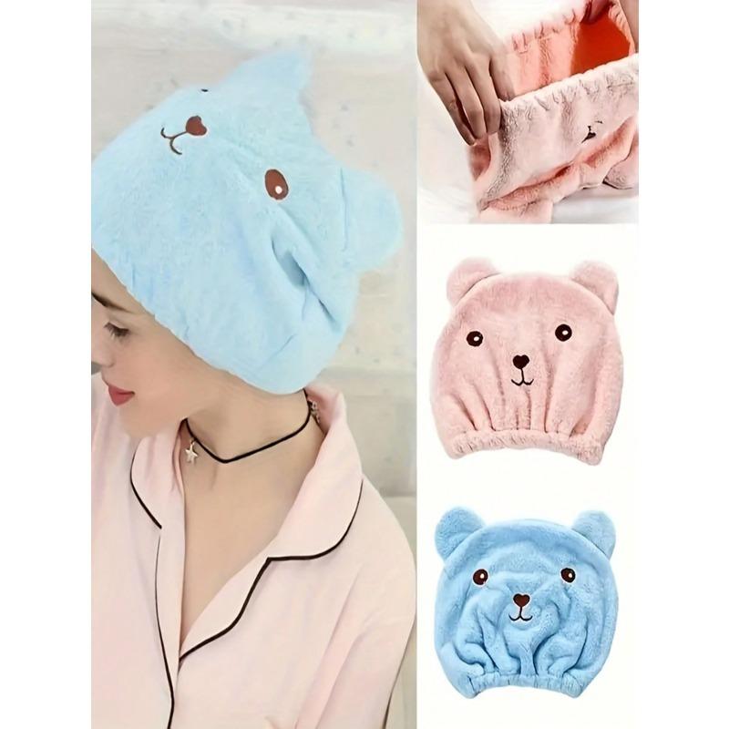 1pc Cartoon Hair Drying Cap, Thick Absorbent Bath Towel Hair Wrap
