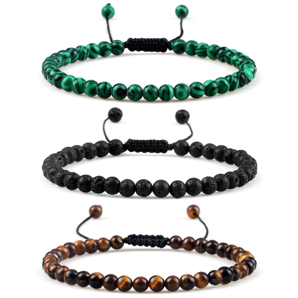 Adjustable Mini Natural Stone Lava Tiger Eye Beaded Bracelets & Bangle for Women Men Chakra Beads Braided Bracelet Charm Jewelry