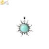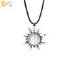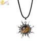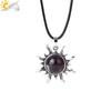 CSJA Vintage Sun Flower Pendant Natural Stone Crystal Necklace Genuine Round Amethysts Pink Quartz Obsidian Lapis Lazuli H120