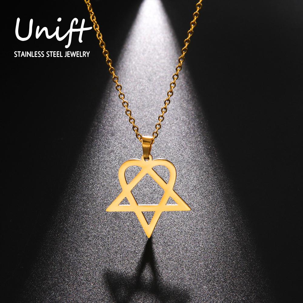 Unift Heartagram Pentacle Pentagram Necklaces for Women Stainless Steel Jewelry Fashion Geometric Pendant Neck Chain Accessories