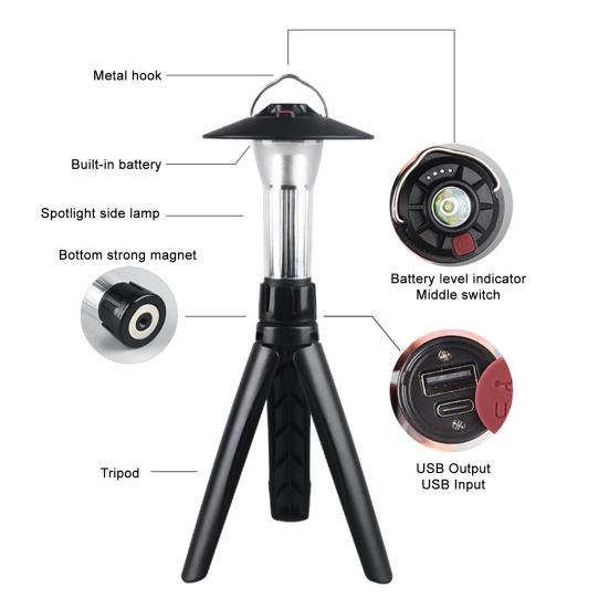 Wygodny Mini Statyw: Wyposażony w standardowy gwint 1/4, ten wszechstronny statyw jest kompatybilny z różnymi lampami kempingowymi, oferując składaną konstrukcję, która ułatwia przenoszenie i jest idealny do użytku w podróży w różnorodnych warunkach.