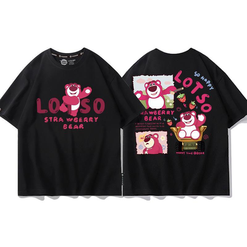 Strawberry Bear Joint TShirt Unisex Loose Fashion Brand Different Pure Cotton Clothes Summer Couples Short Sleeve