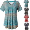 Damska Moda Casual Dekolt V Sweter Krótki Rękaw Duży Rozmiar Vintage Nadrukowany Top