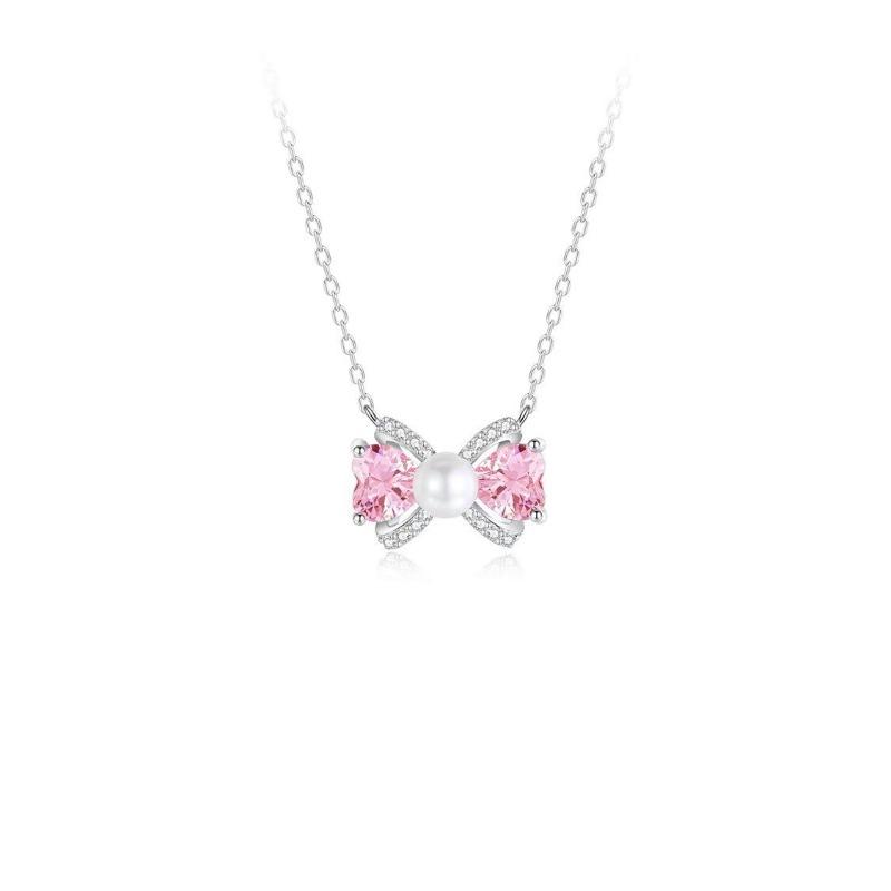 Versatile bow necklace women's niche pendant wind collarbone chain temperament high-end necklace pink