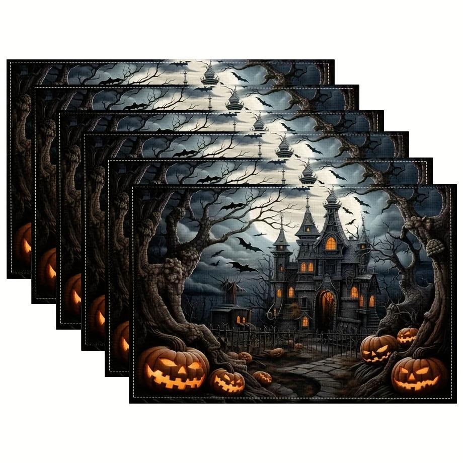 4/6pcs Halloween Placemats Spooky Old Castle Pumpkin Cafe Home Decorations Linen Holiday Atmosphere Gods