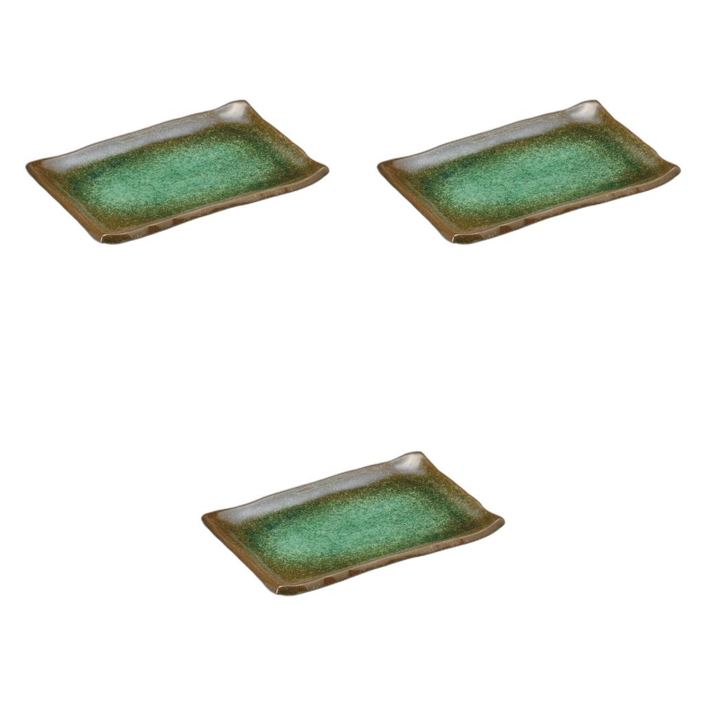 Setomonohonpo of Fresh Green Glass Rectangular Plate x 13 x Reinforced Ceramic Rectangular Plate (Set 3) 7.0 [20.5 1.5 cm]