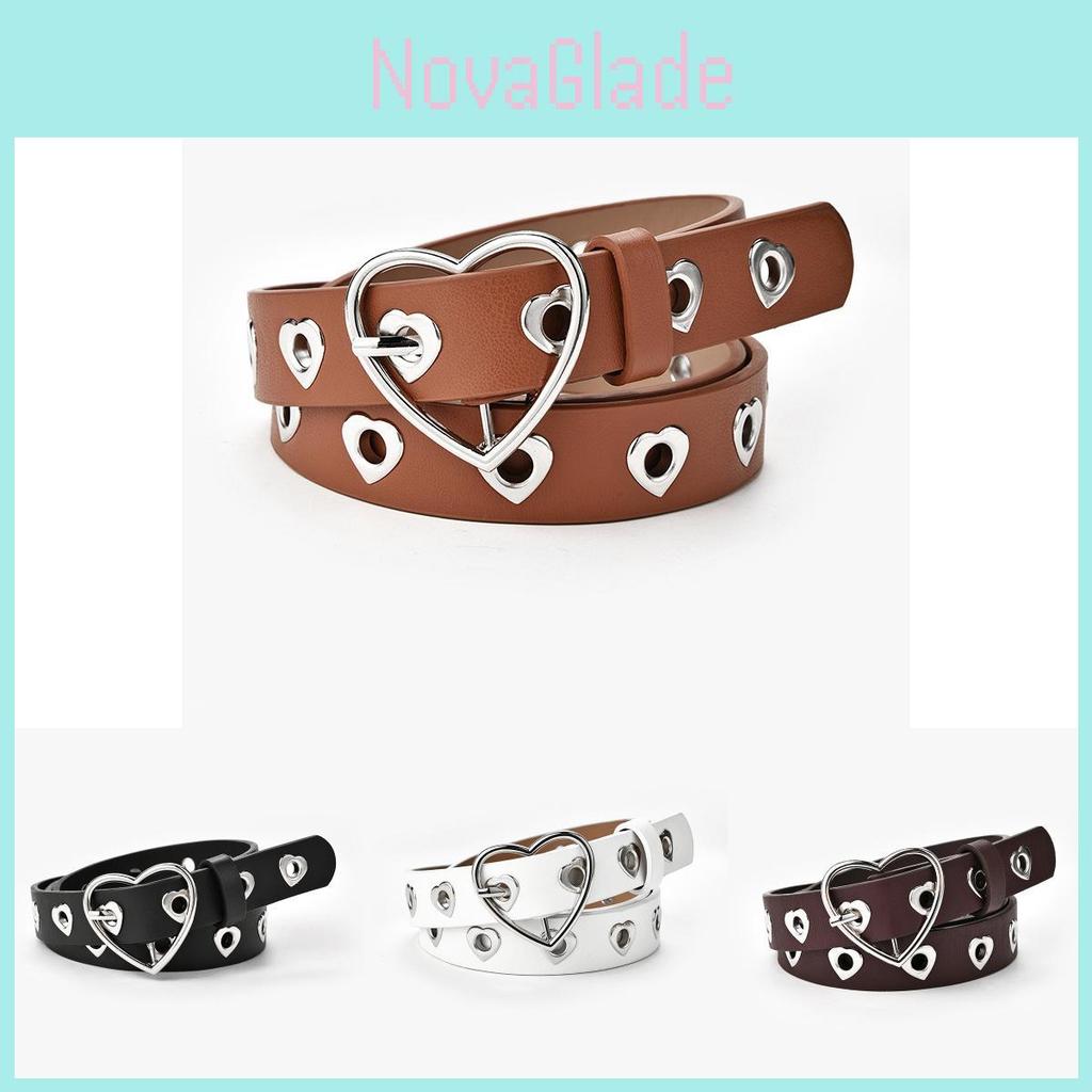 Stylish Heart Buckle Decorative Women's Denim Belt With Faux Leather Material In Black White Coffee And Camel Colors
