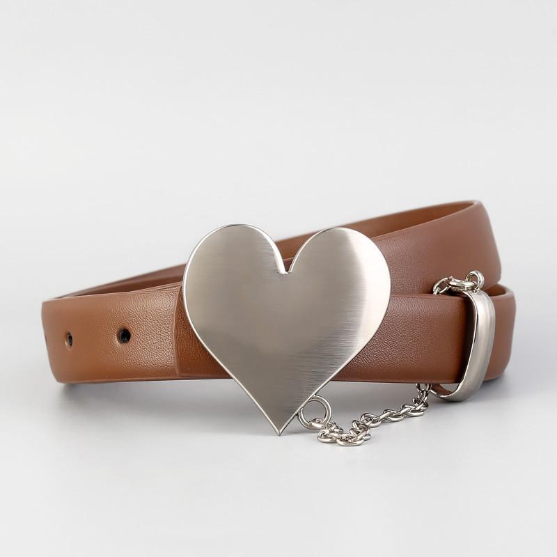 Womens Fashion Leather Belt With Heart Buckle And Chain Decor For Casual And Date Wear