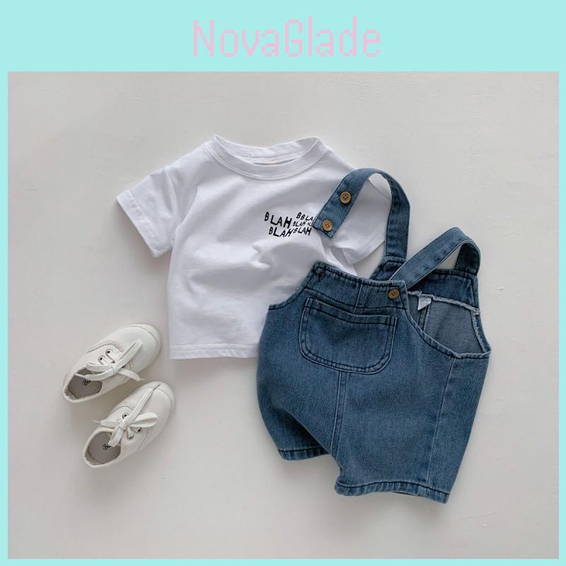 Stylish Design: This set features a trendy Korean style that combines classic denim suspender shorts with a stylish short sleeve t-shirt, making it perfect for fashionable kids.